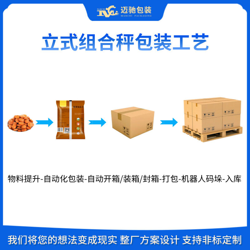 迈驰,是一家专业生产全自动组合秤颗粒包装流水线的生产厂家,无扬尘、高精度,可根据物料不同特性定制包装流水线设备,一对一定制化服务,26年包装行业经验助力生产企业将本增效,提高产能。